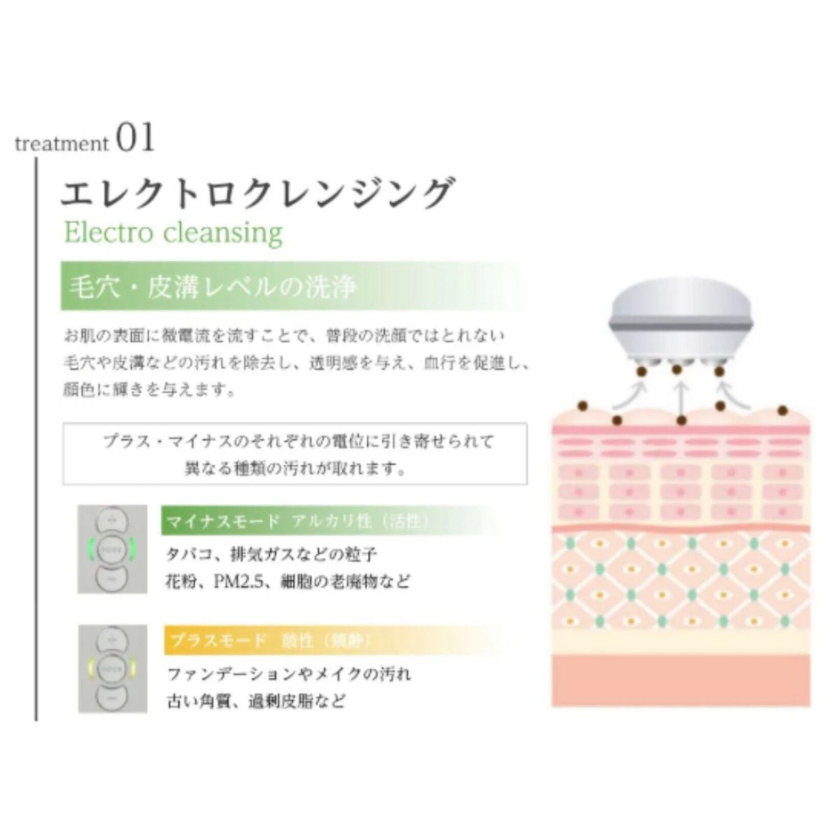 2段階の毛穴洗浄。マイナス(アルカリ性)とプラス(酸性) 2つの電流で異なる種類の汚れを洗浄。